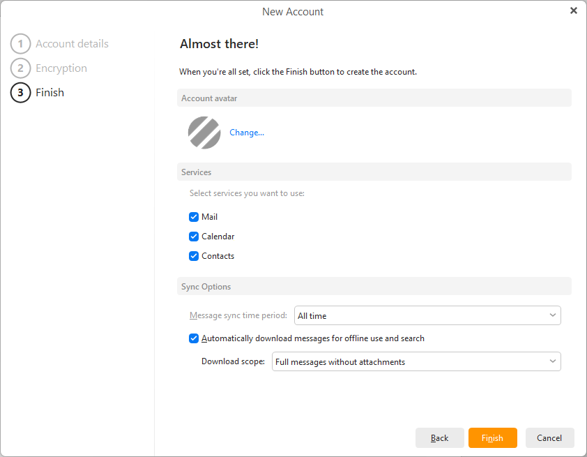 Félicitations! Cliquez sur Terminer et commencez à utiliser eM Client avec votre compte Variomedia.